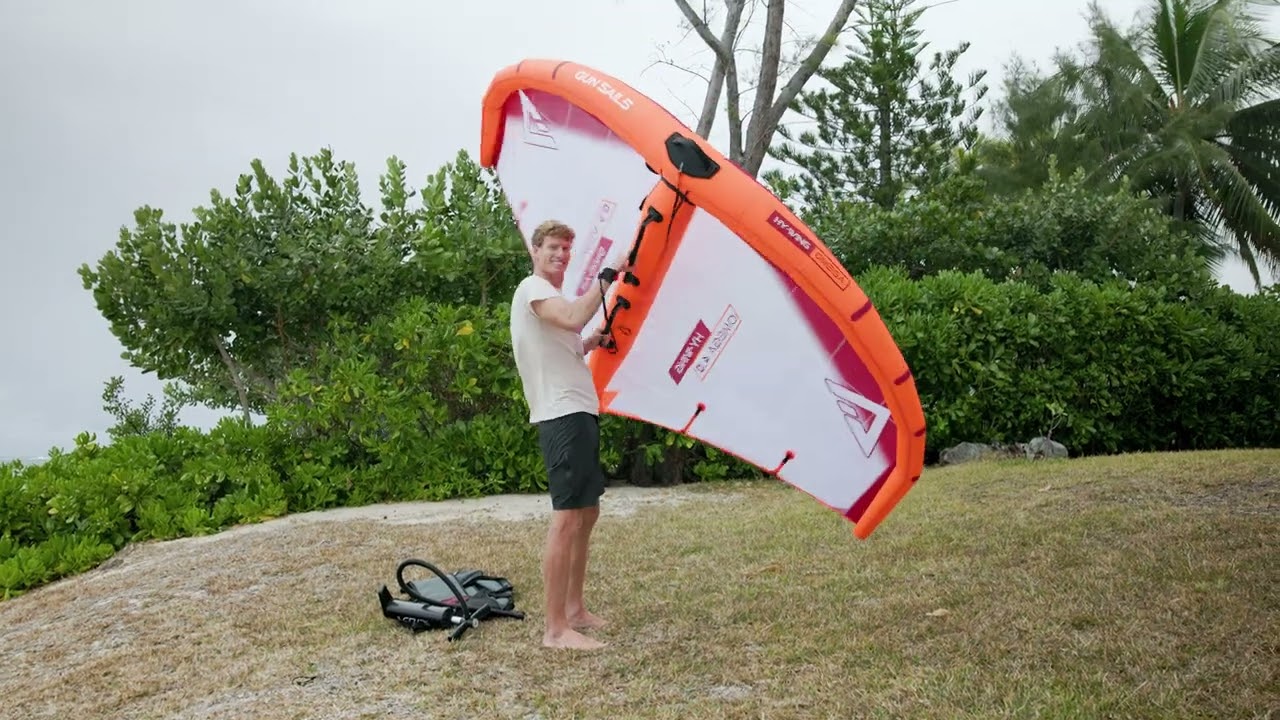 Inclus à la livraison : aile de Wing avec deux poignées alu rigides (le wishbone carbone est vendu séparément), sac à dos de transport, leash, adaptateur de valve I-SUP, clé de valve